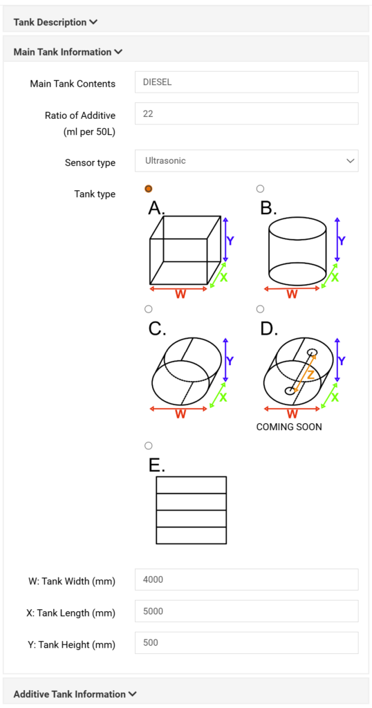 For our 4 known container shapes, there is no need for a strapping table/calibration chart, as this is calculated within the device. However, if connected to an unknown shaped tank, a strapping table/calibration chart can be uploaded via the WebApp.